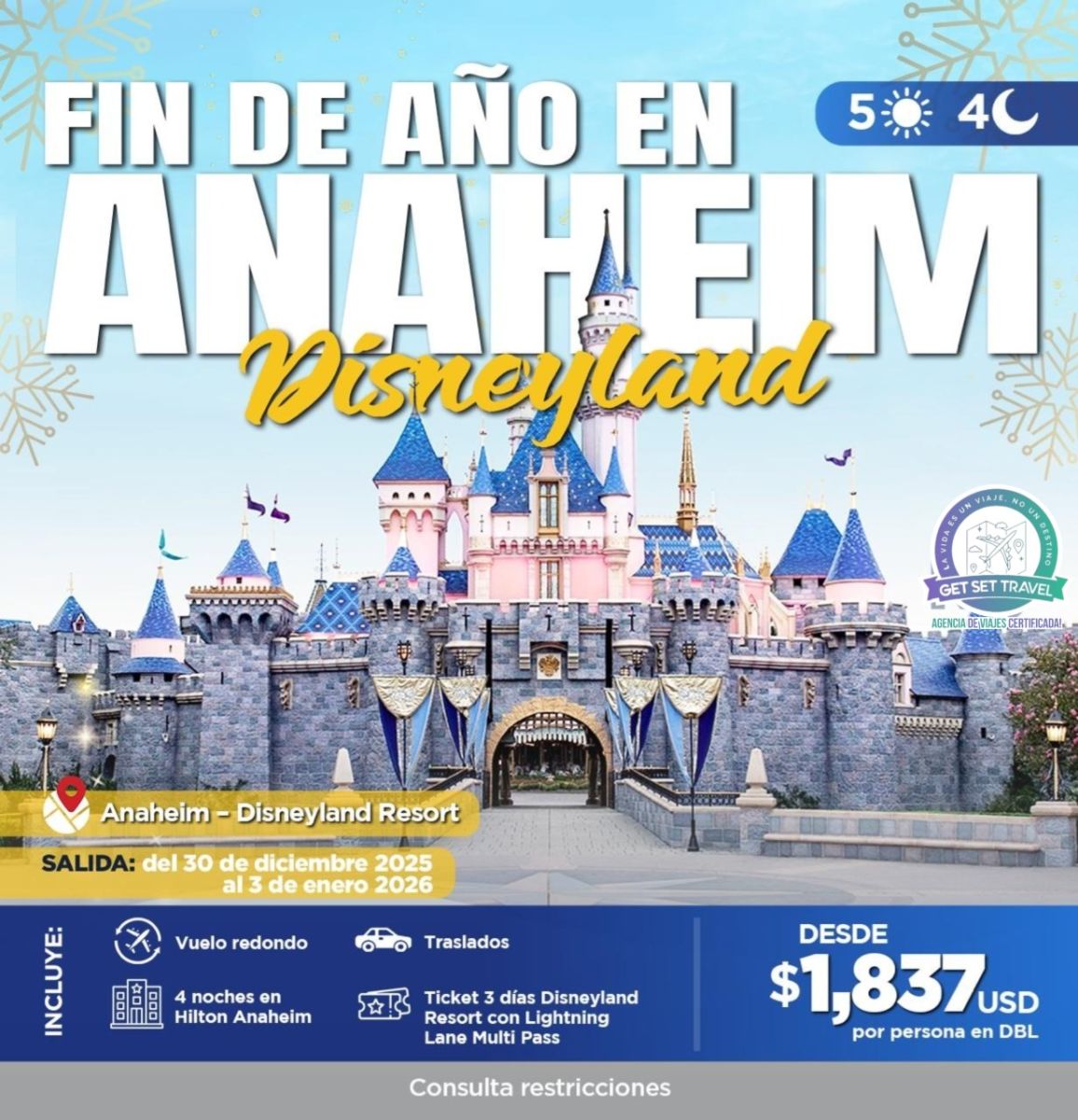 ¡No te lo pierdas! Ahorra hasta un 20 % en estancias seleccionadas de 3 noches o más en un hotel de Disneyland Resort del 17 de agosto al 19 de diciembre de 2025 Reserve ahora hasta el 16 de diciembre de 2025; el viaje debe completarse antes del 20 de diciembre de 2025.